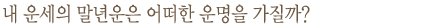¸¹Àº°æÇè°ú »çȸÀûÀ§Ä¡°¡ ¾î´ÀÁ¤µµ ½×¿©ÀÖ´Â ¸»³âÀÇ ÀÚ½ÅÀÇ ¿î¼¼¸¦ ÅëÇØ¼ ÇöÀçÀÇ ¹®Á¦Á¡°ú ¹Ì·¡ÀÇ ¹æÇâÀ» ´Ù½ÃÇѹø Á¡°ËÇØ º¸¼¼¿ä.